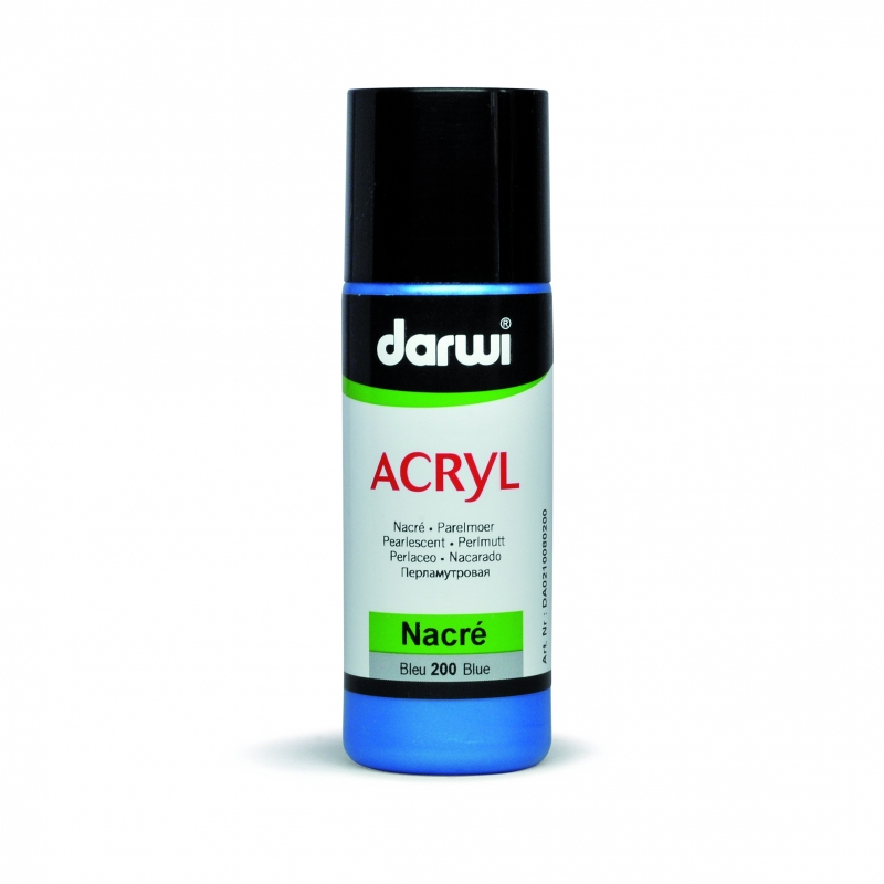 80 ml-es vizes bázisú akrilfesték. Szinte minden felületen alkalmazható (DARWI levegőn száradó gyurma, CERNIT süthető gyurma papír, fa, műanyag, üveg, alumínium). Felvitel jól rázzuk fel és a kezelendő anyagot tisztítsuk le. Száradási idő 48 óra. Nagyon jól ellenáll a fénynek.Matt, fényes, gyönyház, metál és fluoreszkáló kivitelben rendelhető. A flakkon pipettával (kipattintható és tisztítható) van ellátve, ami megkönnyíti a felvitelt.