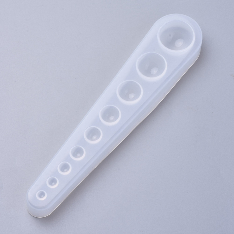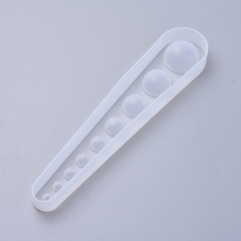 Szilikon mold, forma süthető gyurmához, fondanthoz, csokoládéhoz, marcipánhoz, UV resinhez. Mérete 178x35x15mm. A félgömbök átmérője 5-24mm.