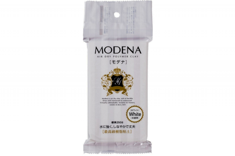 A Modena egy puha, flexibilis levegőn száradó gyurma, mely áttetszőre és vízállóra szárad. Gyakorlatilag törhetetlen! Olaj vagy akril festékkel szinezhető, azaz készíthető belőle színes gyurma. Mindenféle festékkel és lakkal kompatibilis! Leginkább virágok, áttetsző lámpabúrák, cuki édességek és műételek készítés használják. Toxinmentes! Vizet lehet használni a száraz elemek összekötésdéhez. Nagy arányban tartalmaz rezint, ezért ne tároljuk 0 fok alatt. Az ideális hőfok 5-25 celsius fok között van.
