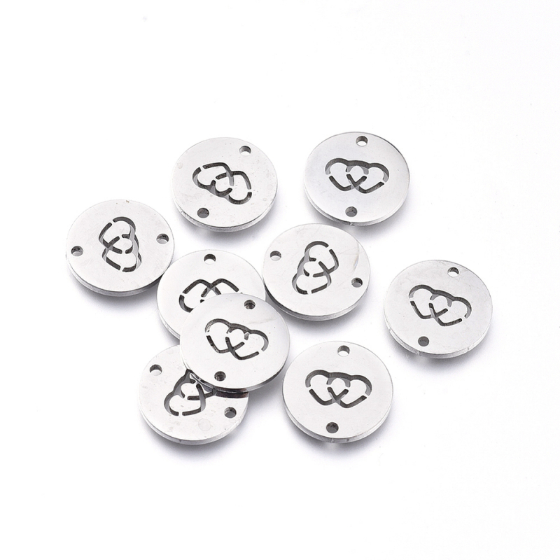 Kör alakú dupla szív jeles rozsdamentes acél medál.