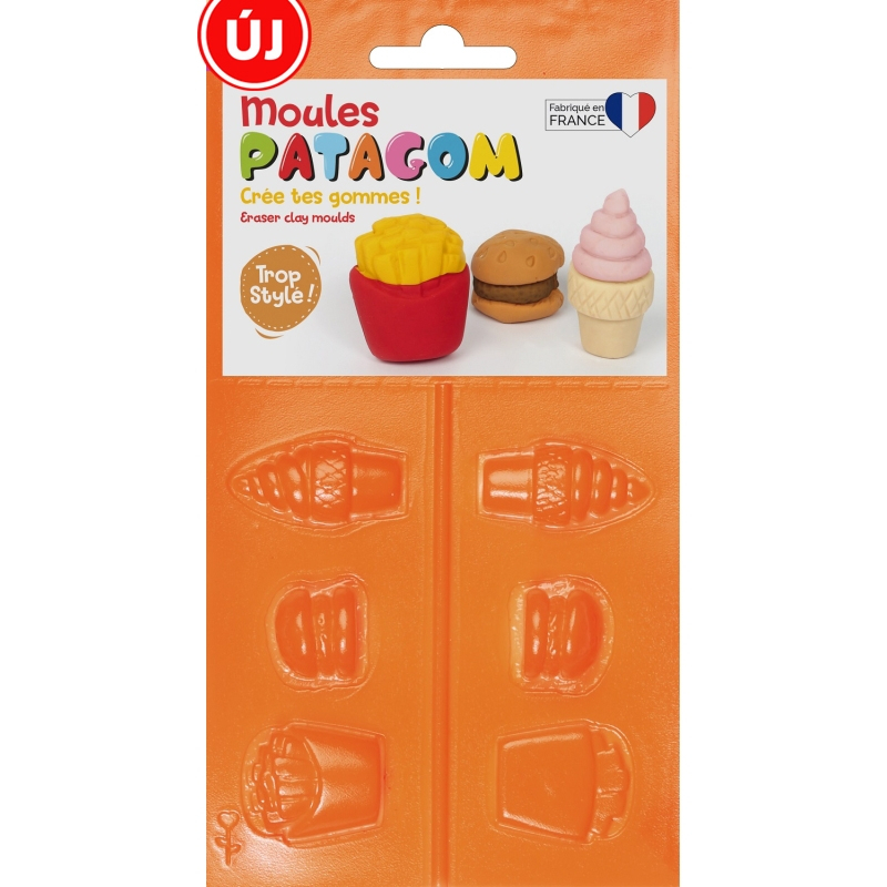 Készíts magadnak saját radírt! A Patagom moldok segítségével még könnyebben formázhatsz magadnak cuki ételeket vagy trendi figurákat! 120 celsius fokon 15 percig kell sütni elektromos sütőben. Hagyd kihűlni és máris kész a radír! A moldokat más süthető vagy levegőn száradó gyurmához is fel lehet használni!