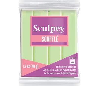 A Soufflé méretben azonos a premo gyurmával, a súlya viszont könnyebb. Így ideális nagyob méretű ékszerek elkészítéséhez. . Színei jól keverhetők egymással, égetése elektromos sütőben 130 celsius fokon 15-30 percig tart.