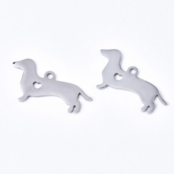 Nemesacél tacskó szivecskével medál ezüst színű